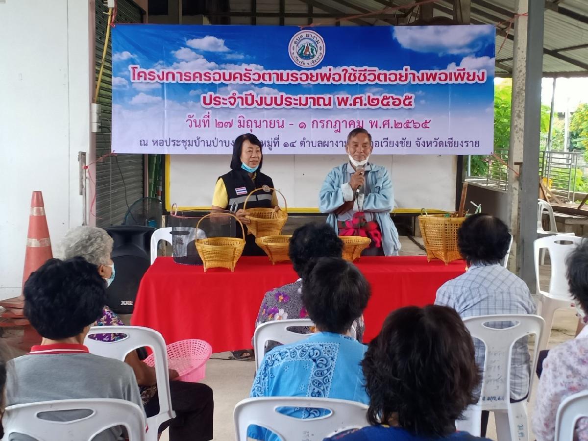 วันที่ 27 มิถุนายน 2565 นายวิทยา ใจปาละ นายกองค์การบริหารส่วนตำบลผางาม มอบหมายให้ สำนักปลัด งานสวัสดิการฯ จัดทำโครงการครอบครัวตามรอยพ่อใช้ชีวิตอย่างพอเพียง ประจำปีงบประมาณ 2565 มีวัตถุประสงค์ของโครงการ เพื่อส่งเสริมการนำหลักเศรษฐกิจพอเพียงมาใช้เป็นแนวทางในการดำเนินชีวิต กลุ่มเป้าหมาย สมาชิกกลุ่มหัตถกรรมจักสาน กลุ่มผู้สูงอายุ กลุ่มสตรี คนพิการ และประชาชนทั่วไป