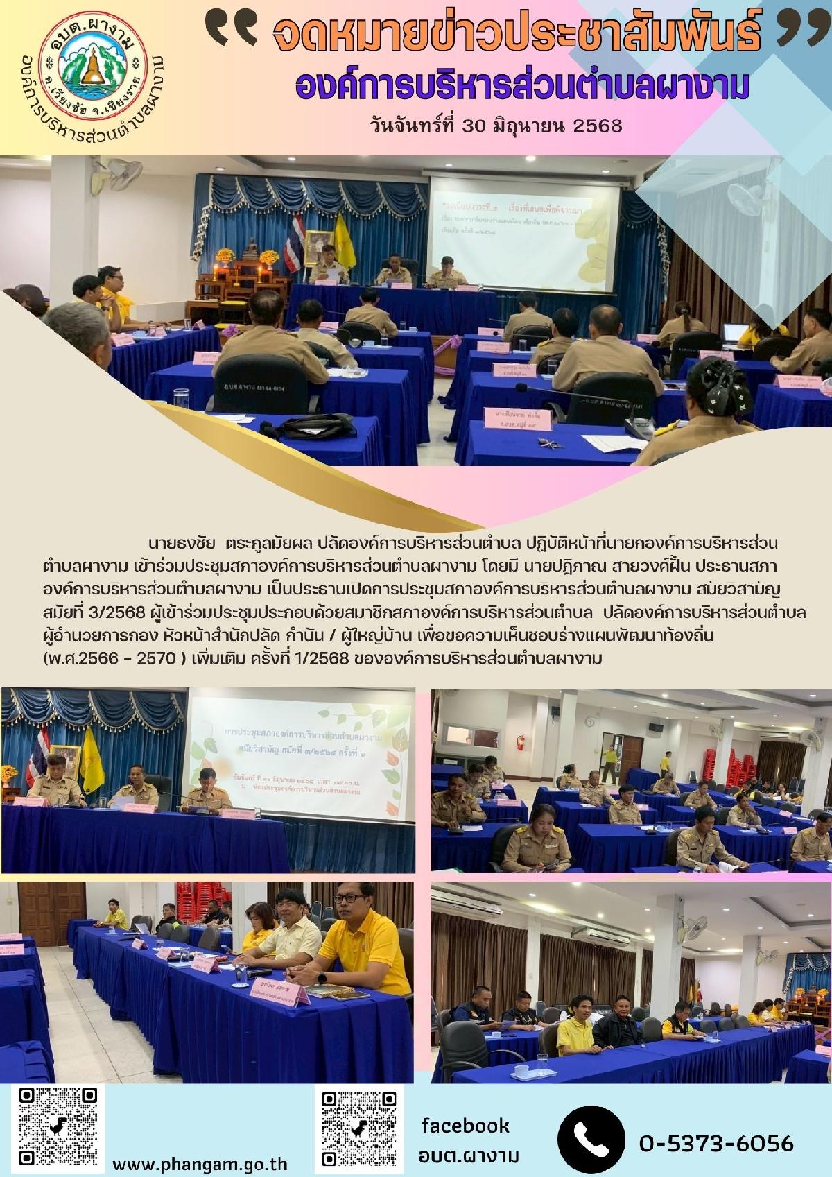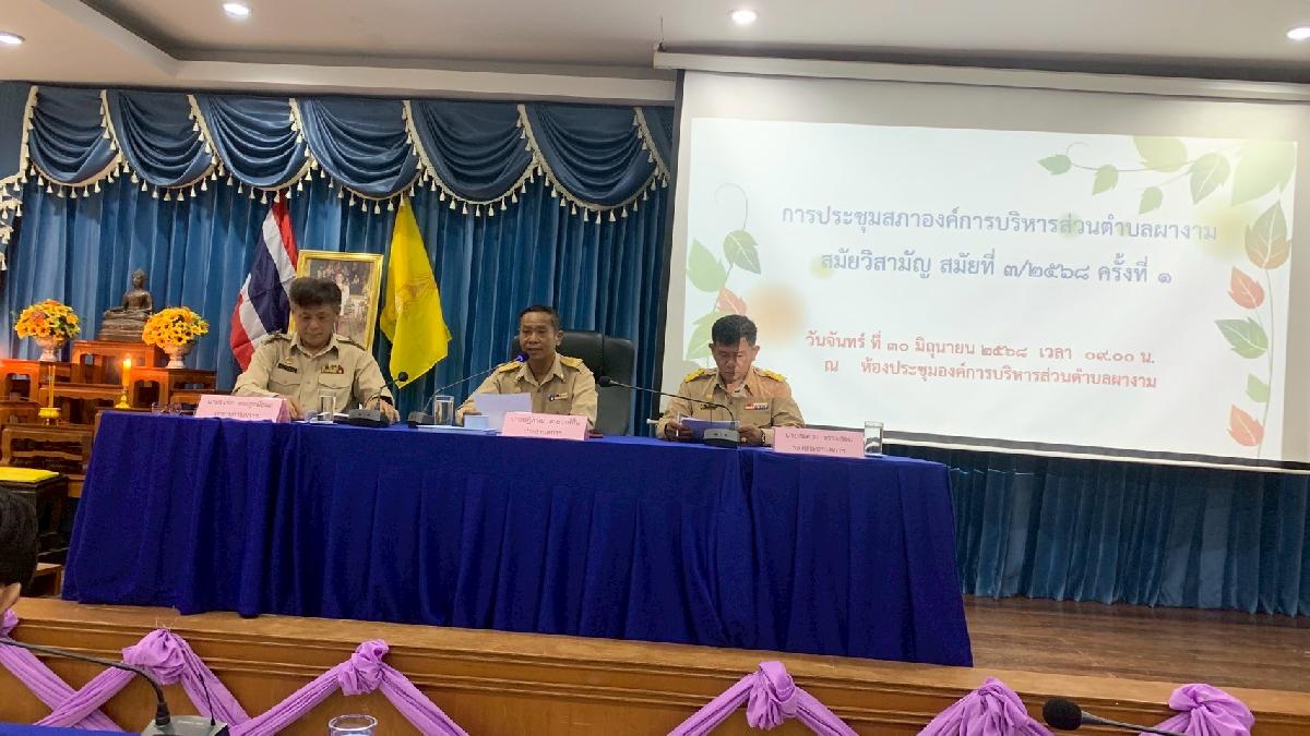 นายธงชัย ตระกูลมัยผล ปลัดองค์การบริหารส่วนตำบล ปฏิบัติหน้าที่นายกองค์การบริหารส่วนตำบลผางาม เข้าร่วมประชุมสภาองค์การบริหารส่วนตำบลผางาม โดยมี นายปฎิภาณ สายวงค์ฝั้น ประธานสภาองค์การบริหารส่วนตำบลผางาม เป็นประธานเปิดการประชุมสภาองค์การบริหารส่วนตำบลผางาม สมัยวิสามัญสมัยที่ 3/2568 เพื่อขอความเห็นชอบร่างแผนพัฒนาท้องถิ่น (พ.ศ.2566 - 2570 ) เพิ่มเติม ครั้งที่ 1/2568 ขององค์การบริหารส่วนตำบลผางาม ผุู้เข้าร่วมประชุมประกอบด้วยสมาชิกสภาองค์การบริหารส่วนตำบล ปลัดองค์การบริหารส่วนตำบล รองปลัด ผู้อำนวยการกอง หัวหน้าสำนักปลัด กำนัน / ผู้ใหญ่บ้าน